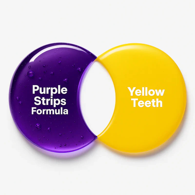 Retirez les Bandes Violettes Vitano et regardez les tons jaunes disparaître instantanément. Notre technologie de correction des couleurs offre cet éclat « retour du dentiste » en quelques secondes.